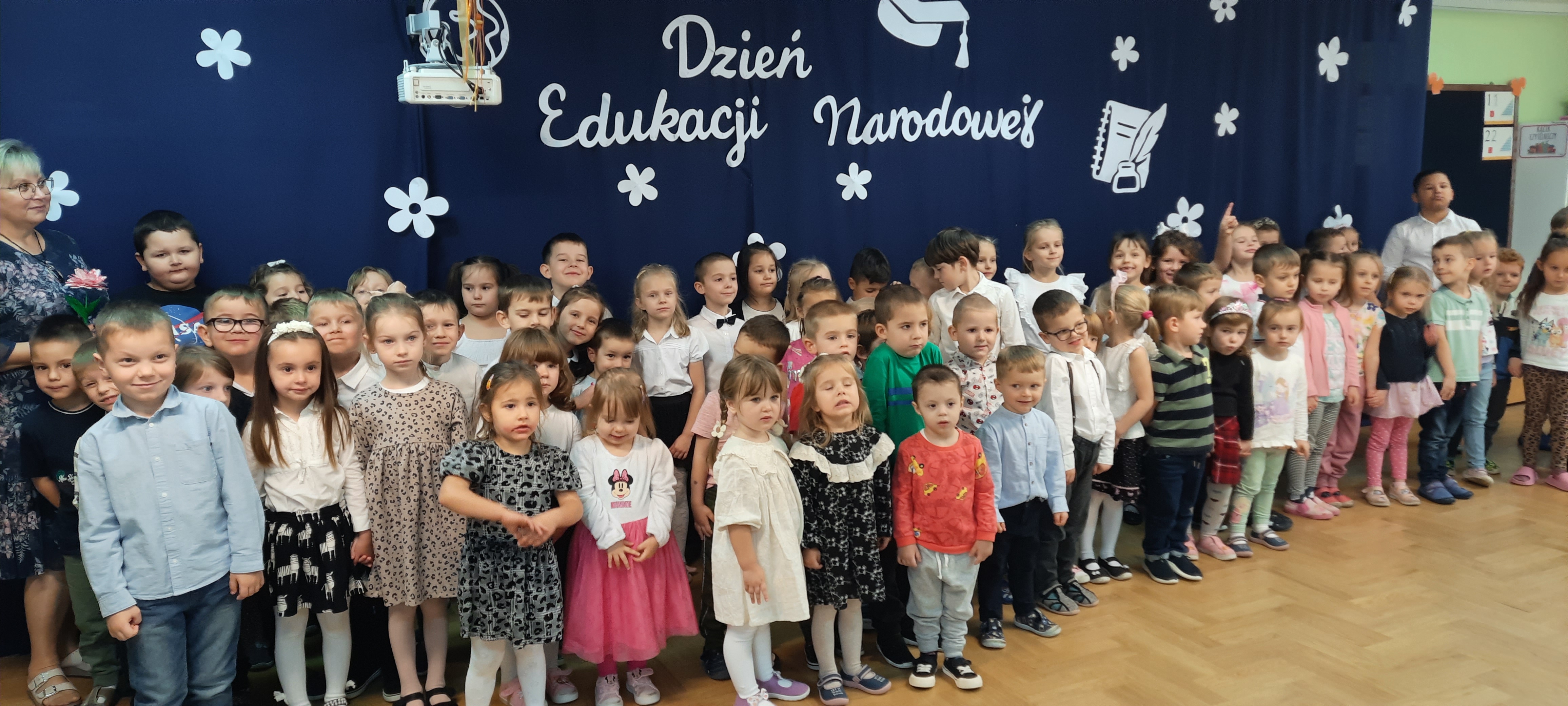 Dnia 14 października 2025 roku w naszym przedszkolu obchodziliśmy Dzień Edukacji Narodowej. Z tej okazji dzieci z grupy „Zajączki” przygotowały akademię, aby podziękować wszystkim pracownikom przedszkola za ich codzienny trud, troskę i uśmiech. Występ pełen wierszy, piosenek i życzeń dostarczył wielu wzruszeń i radości. dzieci wręczyły pracownikom symboliczne upominki (kwiatki) jako wyraz wdzięczności. Uroczystość przebiegała w serdecznej i radosnej atmosferze, przypominając wszystkim, jak ważna i piękna jest praca nauczyciela oraz wszystkich osób zaangażowanych w życie przedszkola. Na zakończenie Pani Dyrektor złożyła życzenia i podziękowania wszystkim pracownikom przedszkola.