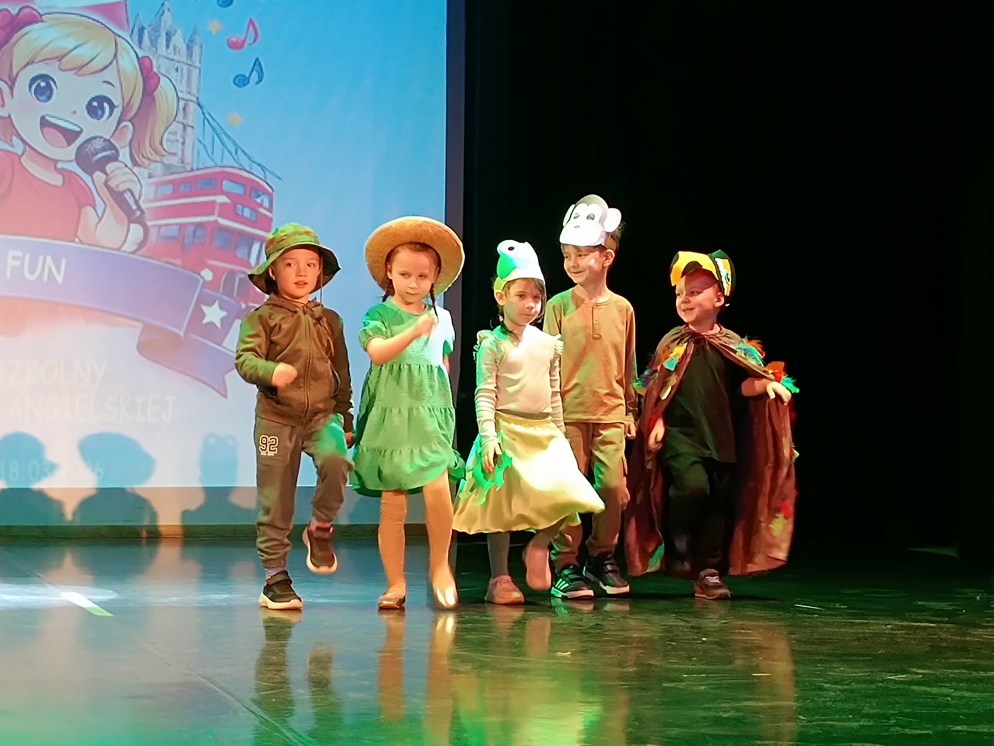 Dzieci z grupy „Motylki” i „Plastusie” wzięły udział w Międzyprzedszkolnym konkursie piosenki angielskiej „English is fun!” zorganizowanym przez Prywatne Przedszkole froeblowsko–językowe „Ene-Due-Rabe”. Wydarzenie odbyło się 18 marca 2026 roku w Spółdzielczym Domu Kultury w Stalowej Woli. Mali uczestnicy zaprezentowali przygotowane utwory w języku angielskim, wykazując się dużym zaangażowaniem, odwagą oraz talentem scenicznym. Udział w konkursie był dla nich cennym doświadczeniem, które pozwoliło rozwijać umiejętności językowe, muzyczne oraz współpracę w grupie.