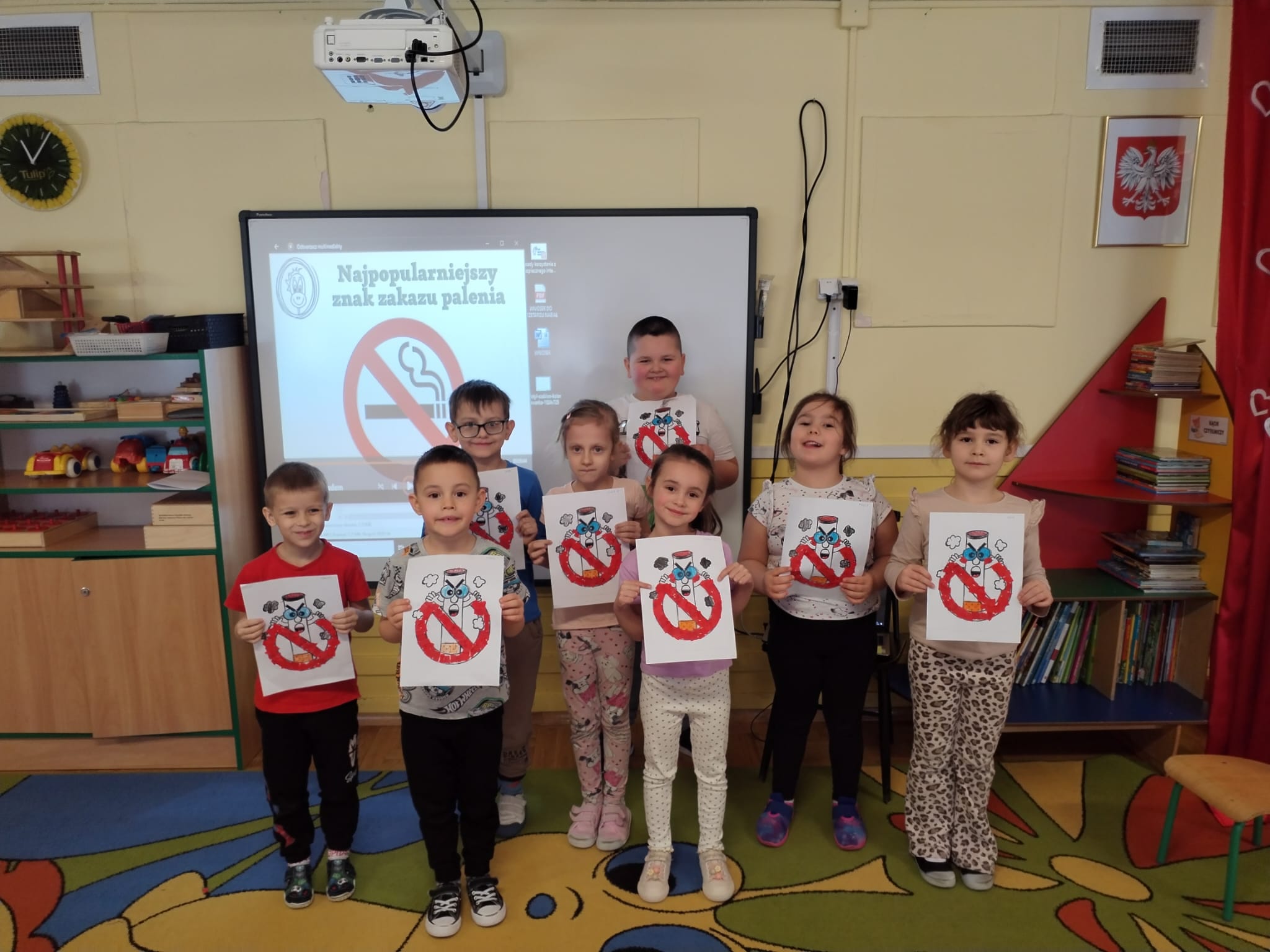 W grupie Motylki, Zajączki i Plastusie zrealizowano Ogólnopolski program edukacji antytytoniowej „Czyste powietrze wokół nas”, koordynowany przez Państwową Inspekcję Sanitarną. Celem programu było wykształcenie u naszych wychowanków świadomej postawy wobec ochrony własnego zdrowia oraz walki z zanieczyszczeniami powietrza. Pod opieką wychowawców, przedszkolaki z grup Motylki, Zajączki i Plastusie wzięły udział w cyklu zajęć podczas których: