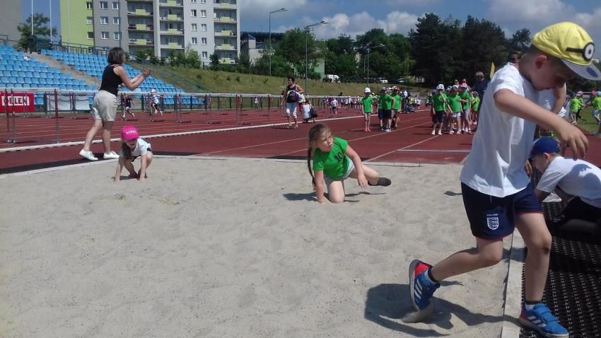 VI. SPORTOWY ZAWRÓT GŁOWY, udział starszaków w zawodach na stadionie - 6 VI 2019 r.